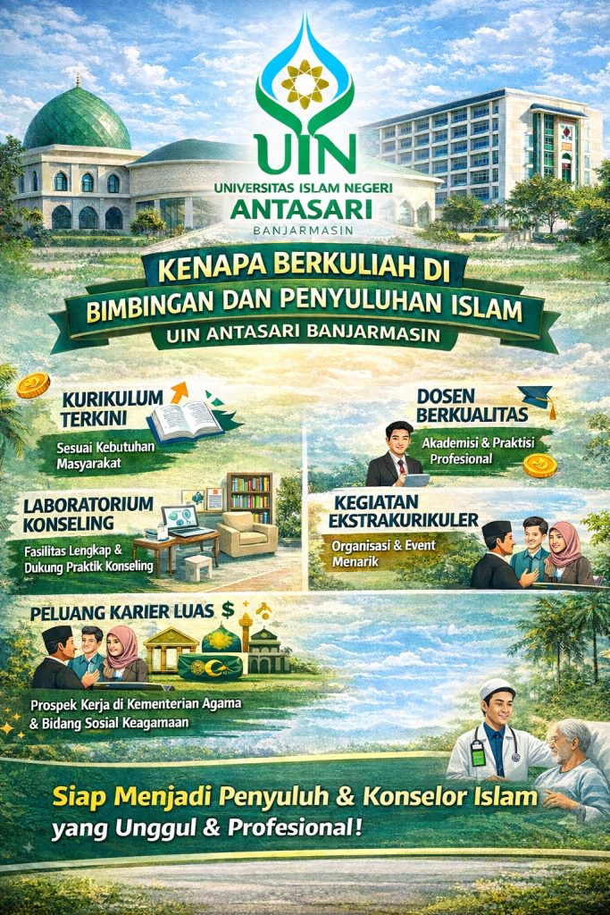 Puji syukur kita panjatkan ke hadirat Allah SWT dan shalawat bagi Rasulullah SAW. Selamat datang di laman resmi Program Studi Bimbingan Penyuluhan Islam (BPI) UIN Antasari Banjarmasin.